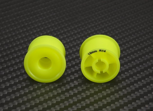 PN Racing Mini-Z 2WD Machine Delrin Cut Yellow Formula 14x19mm Flanged Wheel R14